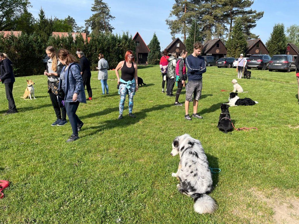 - Socializační cvičení s ostatními pejsky (cílem je pilovat ovladatelnost pejska v různých situacích jako jsou základní povely, chůze na vodítku, odložení atd.)